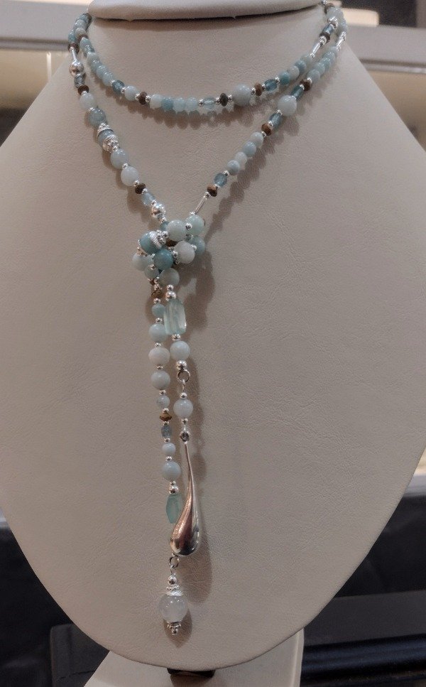 Lazo de Plata 925 Piedras naturales y/o cristales, para usar como más te guste, con nudo y suelto... o collar largo. Con punteras de Plata y piedra. Medida aprox 100 cm
